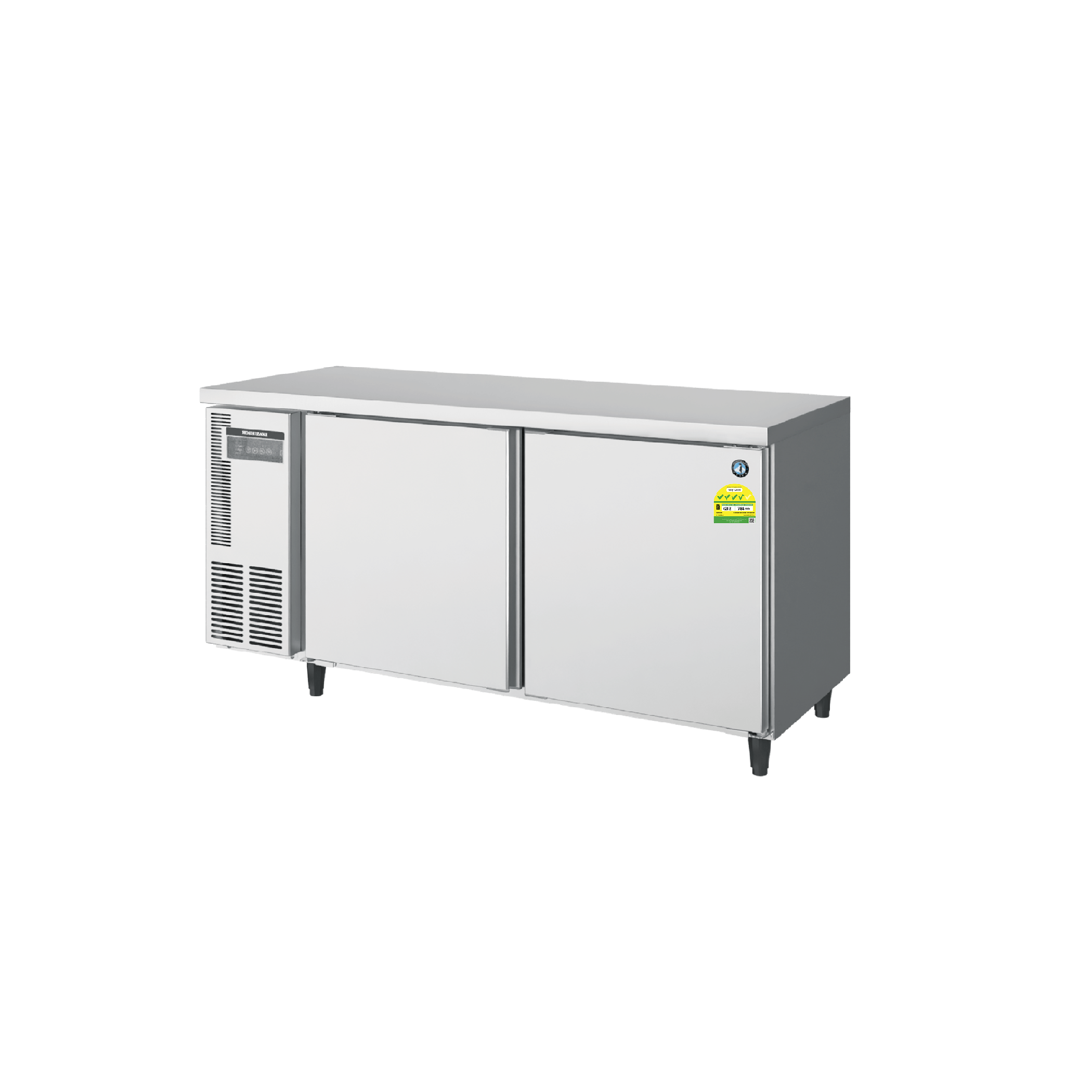 Về mặt thông số kỹ thuật, Hoshizaki RFT-156MC-S sở hữu cấu hình mạnh mẽ trong một thiết kế vững chắc. Tủ có kích thước bên ngoài 1500 x 600 x 850 mm, cung cấp bề mặt bàn thao tác inox vững chãi phía trên. Điểm ưu việt của model này chính là sự phân chia dung tích thông minh: ngăn mát 96.7L và ngăn đông 100.6L, đi kèm hệ thống 4 kệ giúp việc sắp xếp thực phẩm trở nên khoa học. Thiết kế 2 cánh mở riêng biệt giúp hạn chế tối đa tình trạng thất thoát nhiệt khi lấy nguyên liệu ở từng ngăn cụ thể.