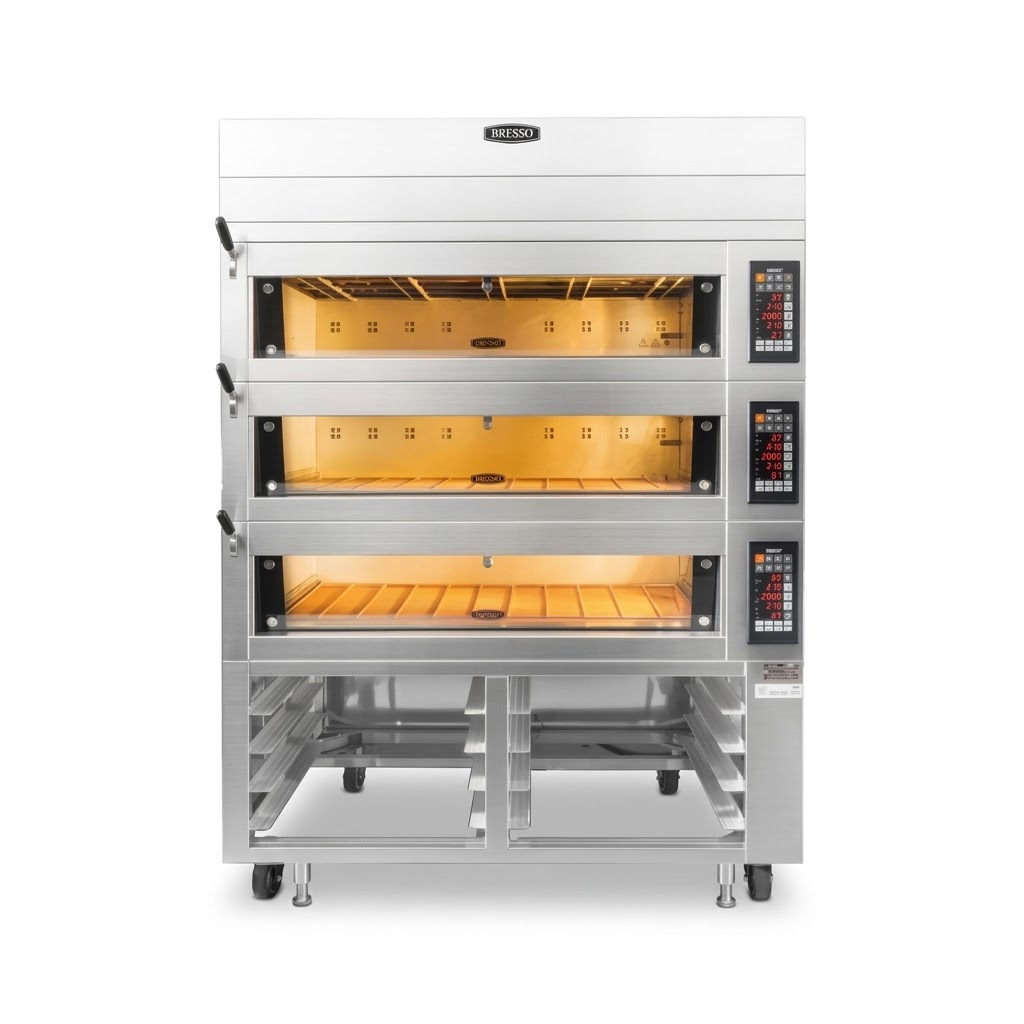 Lò sàn 3 tầng 9 khay dùng điện BRESSO HBWO 3003 ZS3 giải pháp nướng bánh quy mô công nghiệp với hệ thống phun ẩm và đá nướng nhập khẩu Đức