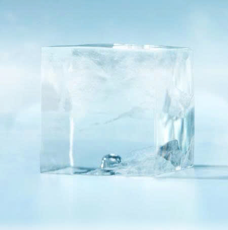 Viên đá pha lê: Kết quả là những viên đá vuông vức 28x28x32 mm trong suốt, đặc và không có lõi trắng.