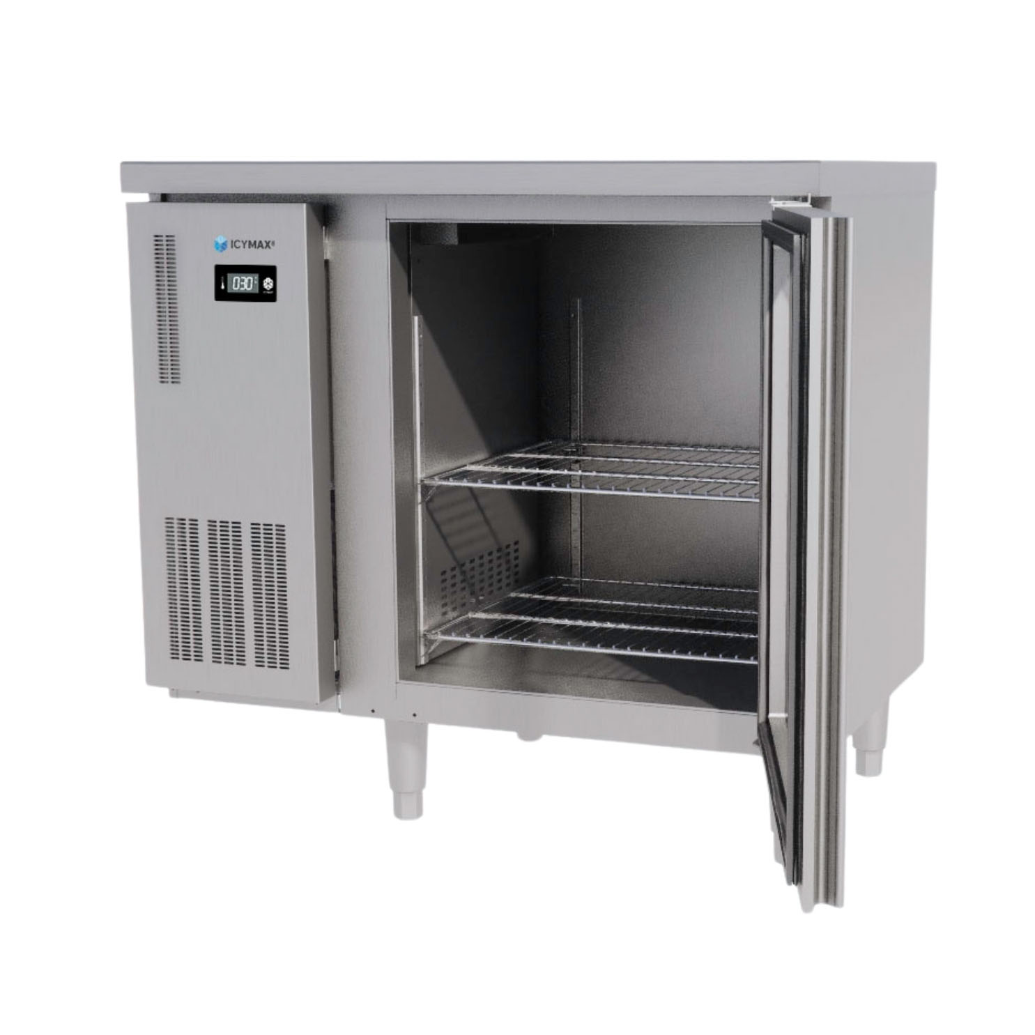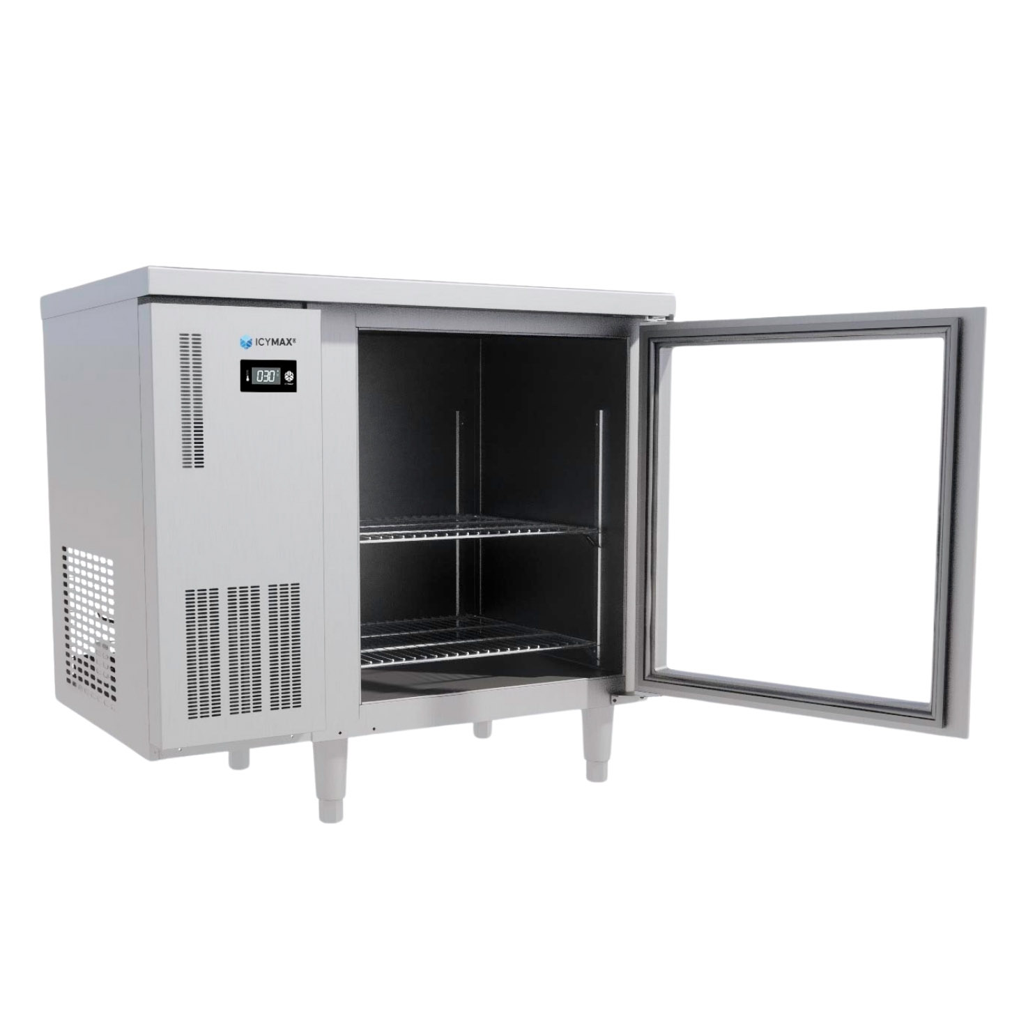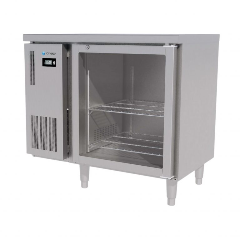 Tủ Bàn Mát 1 Cánh Kính ICYMAX ICR-1G097 900×750 – Giải Pháp Lưu Trữ Nguyên Liệu Kết Hợp Bàn Thao Tác Cho Bếp Chuyên Nghiệp