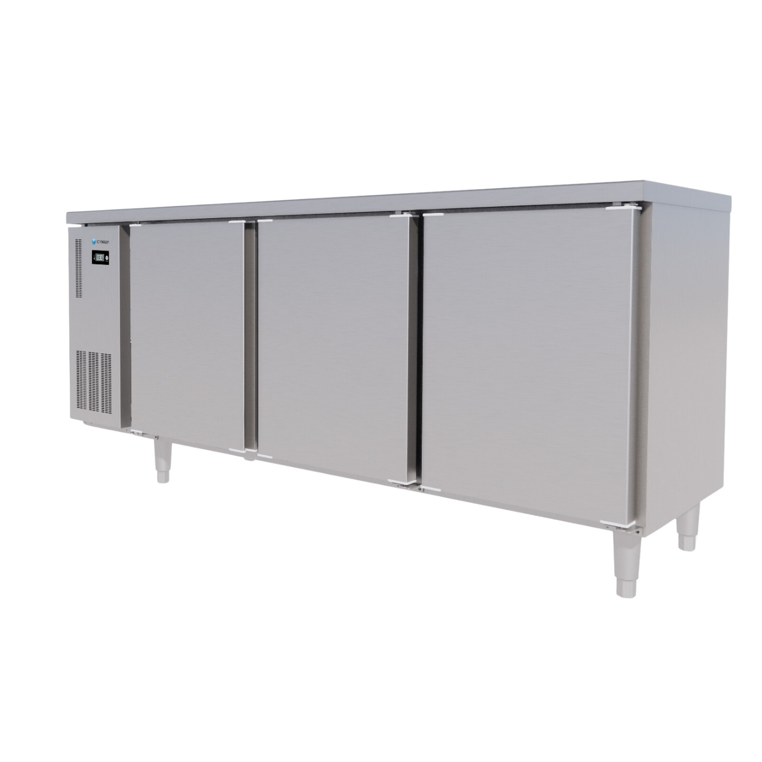 Trong một không gian bếp chuyên nghiệp, nơi mỗi giờ có thể xử lý hàng trăm suất ăn, hệ thống bảo quản dưới mặt bàn không chỉ đóng vai trò lưu trữ mà còn ảnh hưởng trực tiếp đến tốc độ ra món và khả năng kiểm soát chi phí nguyên liệu. Model ICR 3S186 với cấu hình ba cánh, chiều dài 1800 mm và dung tích 405L được thiết kế cho những mô hình cần tính tổ chức cao, luồng thao tác rõ ràng và khả năng duy trì nhiệt ổn định trong điều kiện làm việc liên tục.