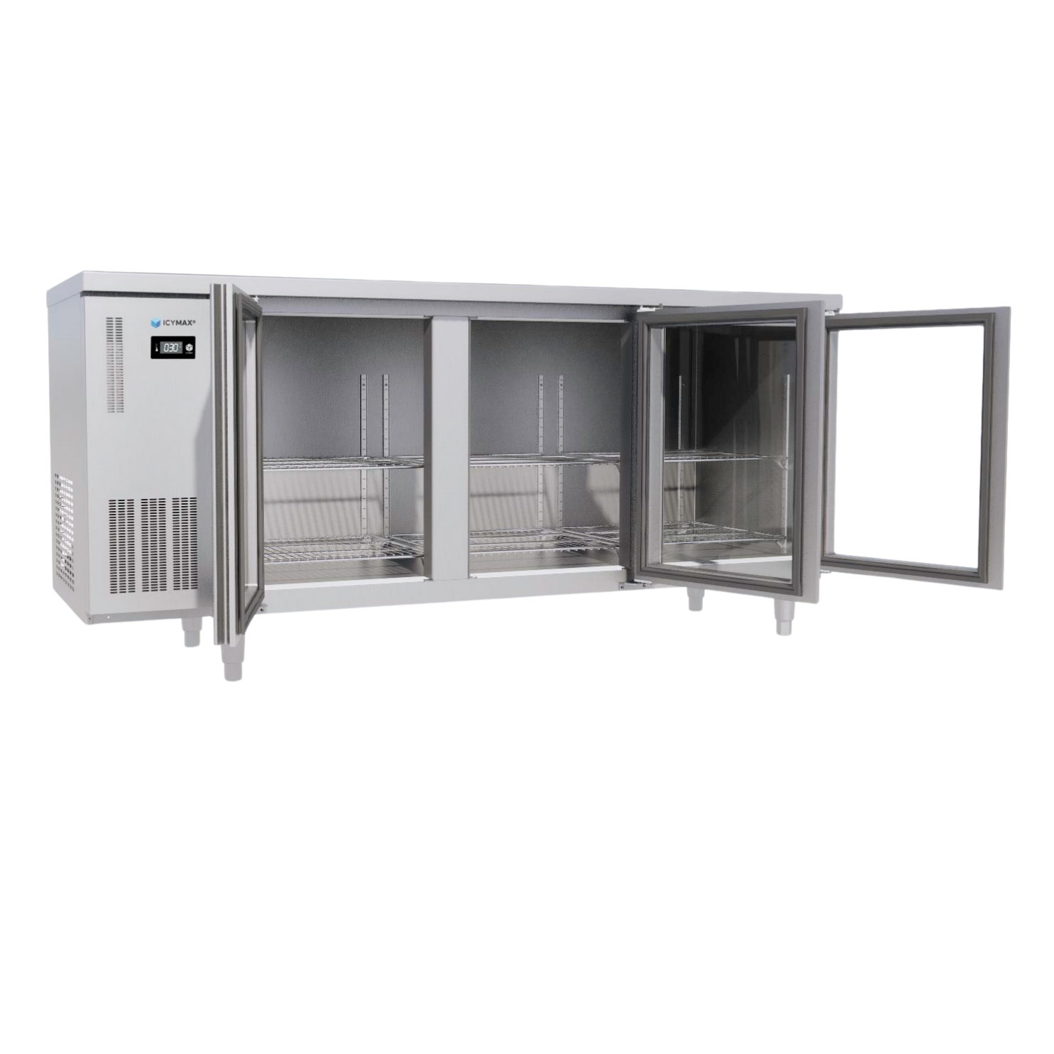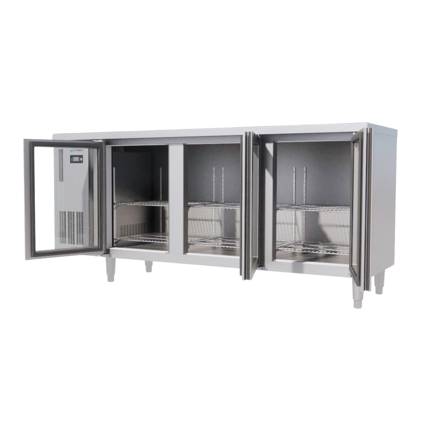 TỦ BÀN MÁT 3 CÁNH KÍNH 1800X600 ICYMAX ICR 3G186 – Giải Pháp Lưu Trữ Nguyên Liệu Linh Hoạt Cho Bếp Nhà Hàng