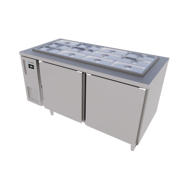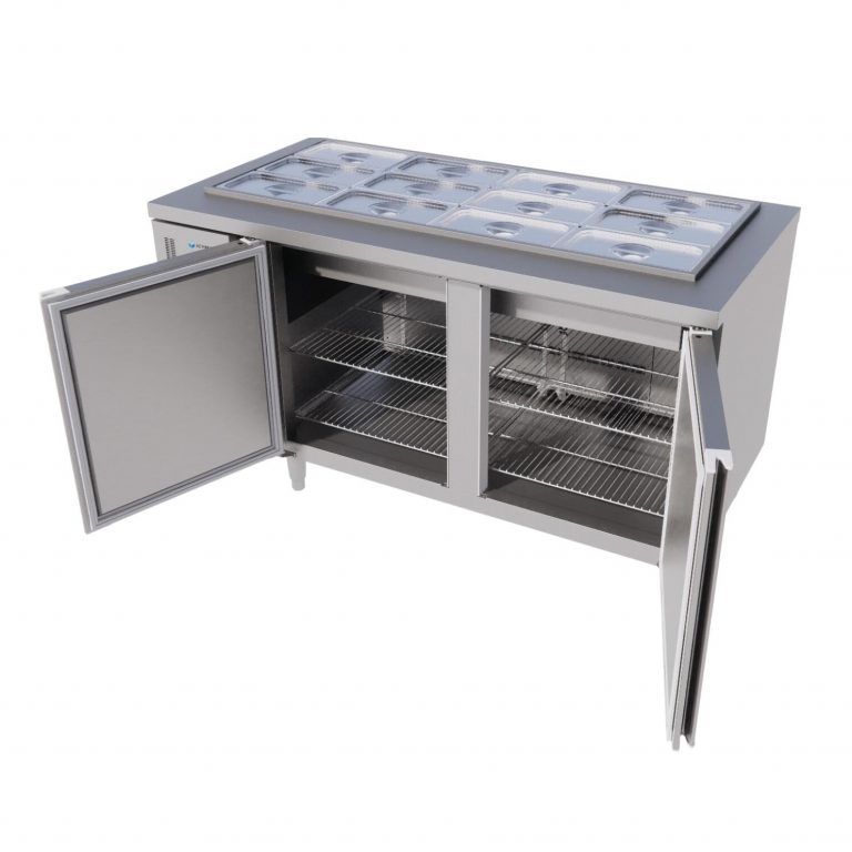 Trong một quán pizza, tủ có thể chứa các khay phô mai, xúc xích, thịt nguội, nấm và rau củ. Trong khi đó, ở một nhà hàng salad, khoang tủ có thể được sử dụng để lưu trữ nhiều loại rau xanh, topping và nước sốt khác nhau.